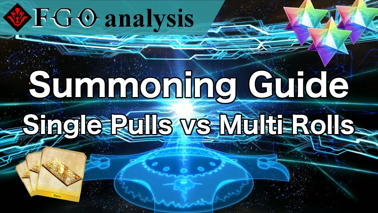 An end to Multi vs Single rolls Discussion Im not in anyway related to the youtuber that figured this out but I figured Id share the results and videos so we can put the single vs multiroll discussion to bed once and for all. Summoning allows players to receive additional Servants Craft Essences Experience Cards and Status Up Cards. Law of the Jungle.